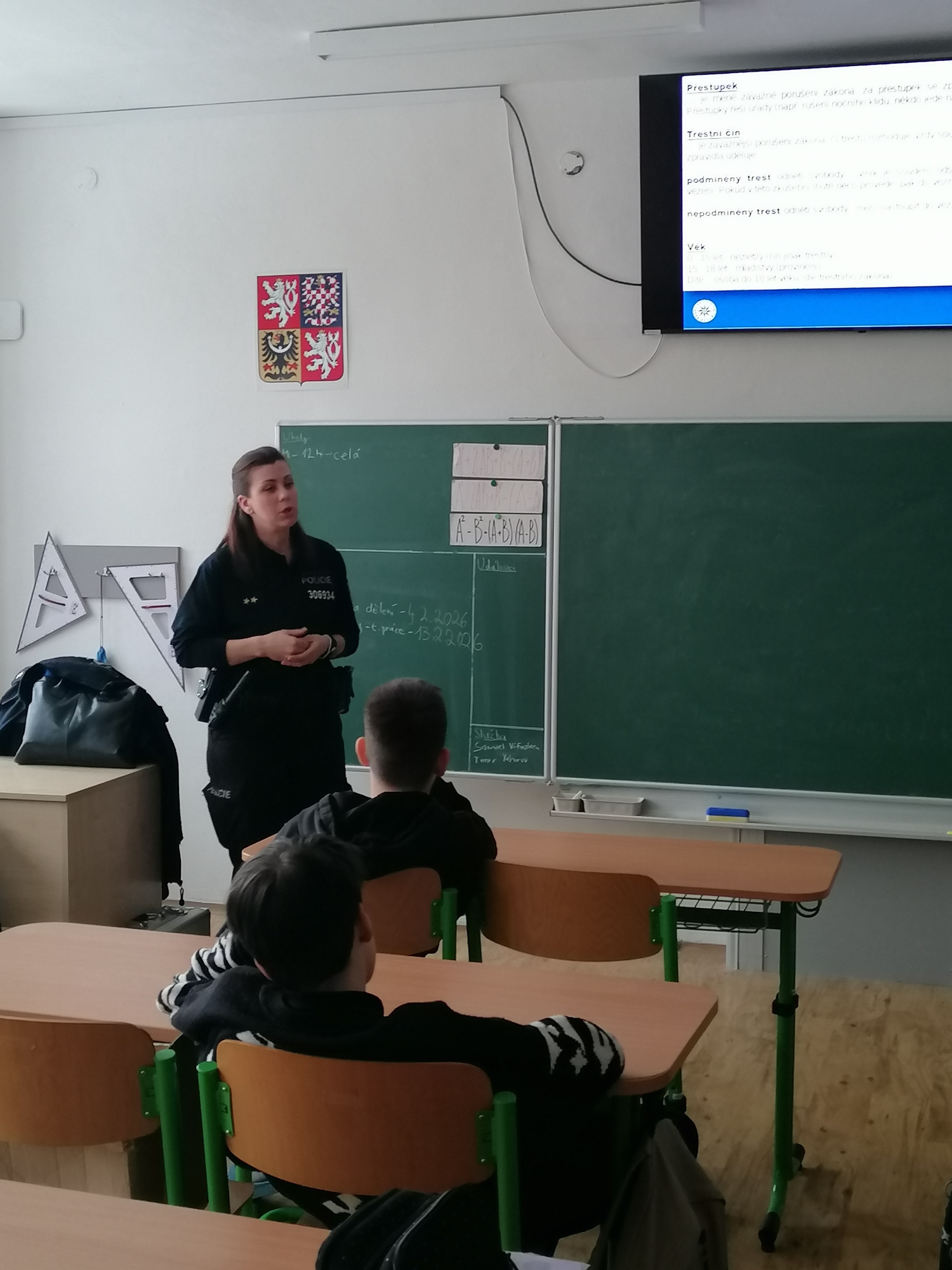 Dne 4. února přišla do VIII. C paní policistka popovídat o trestní odpovědnosti dětí a mladistvých. Vysvětlila podrobně a srozumitelně všechny důležité pojmy, seznámila žáky s hlavními zákony souvisejícími s jejich věkem. Odborné věci prokládala zajímavými příklady z praxe, což naše žáky velmi zaujalo. Přednáška byla zajímavá, plná informací pro život, žáci byli mnohdy překvapeni trestními sazbami a určitě si i něco přínosného odnesli.