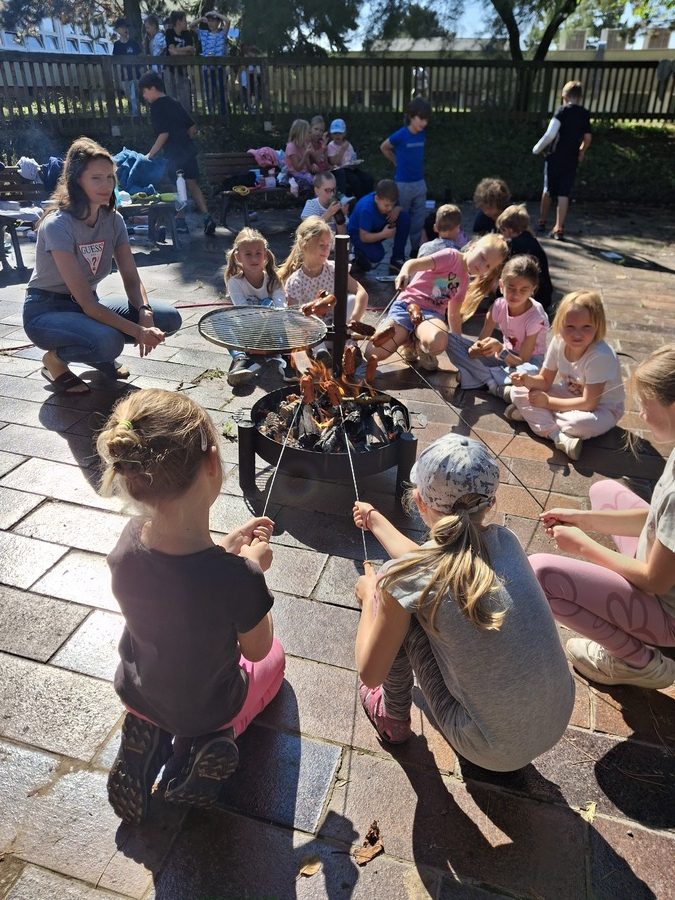 Na závěr čekal všechny zasloužený „vrchol dne“ – společné opékání špekáčků. Děti poprvé využily nové přenosné ohniště, které škola pořídila díky školnímu parlamentu z programu PARO do škol. Vůně ohně, praskající dřevo a spokojené hlasy dětí vytvořily krásnou tečku za vydařeným dopolednem.